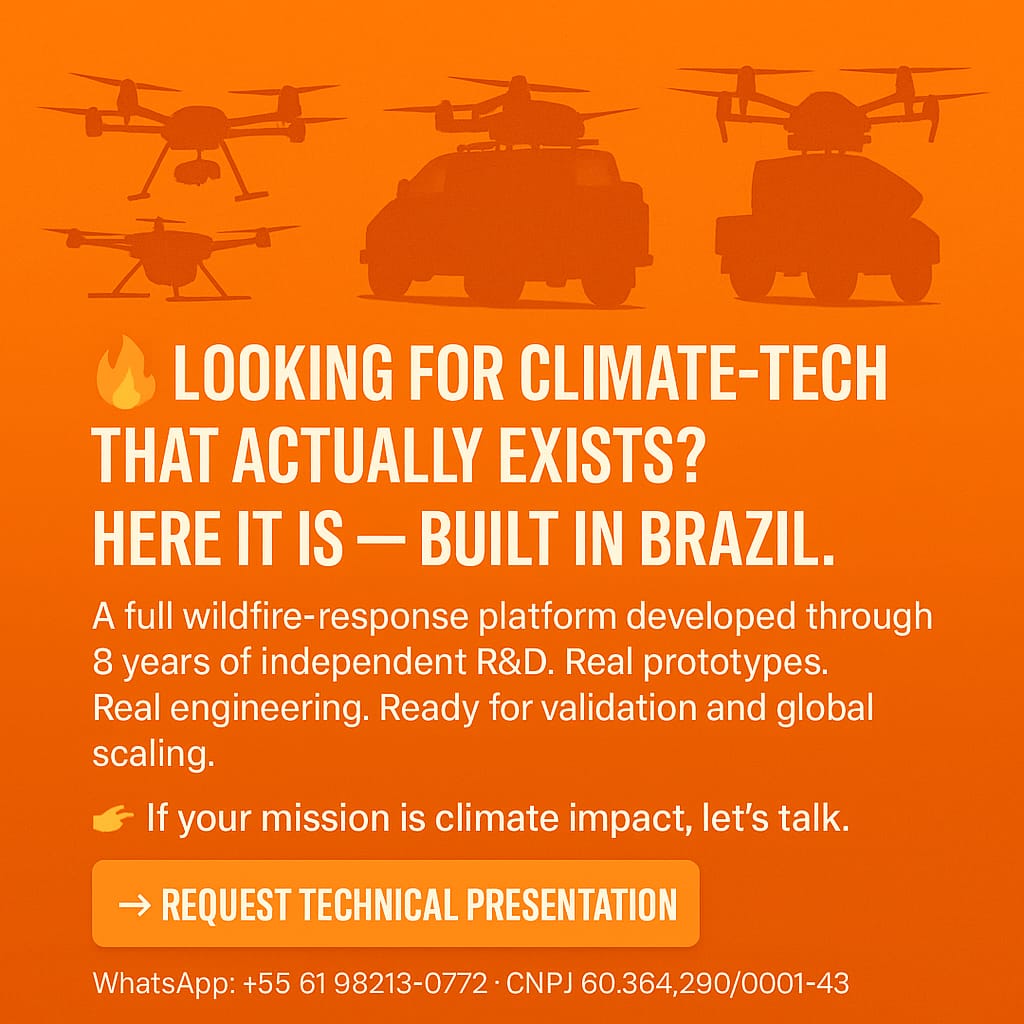 For eight years, fully functional prototypes were developed with personal resources to confront the growing threat of wildfires and extreme climate events affecting ecosystems and communities worldwide.